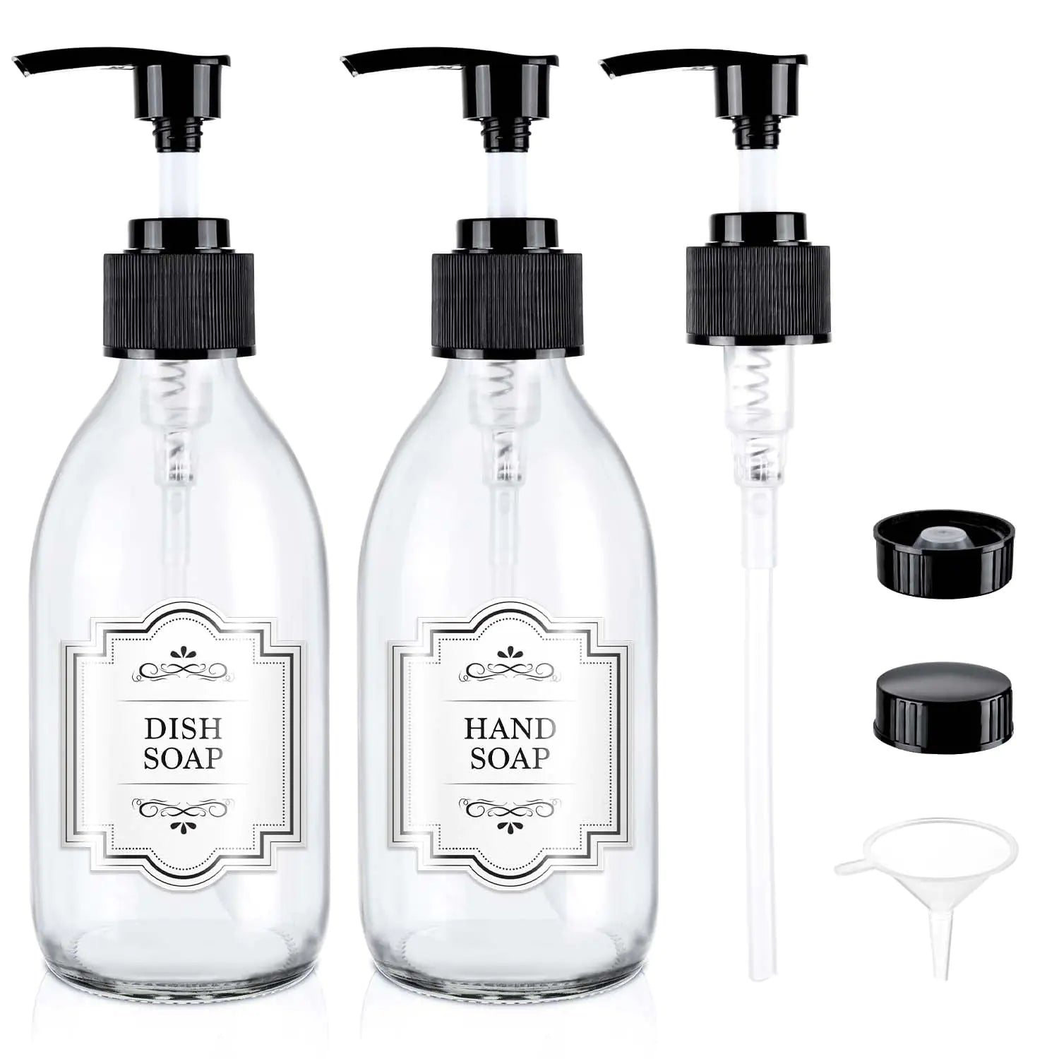 8 oz Glass Bottle with Black Pump 2 Pack 250ml Clear Soap Dispenser Refillable for Kitchen