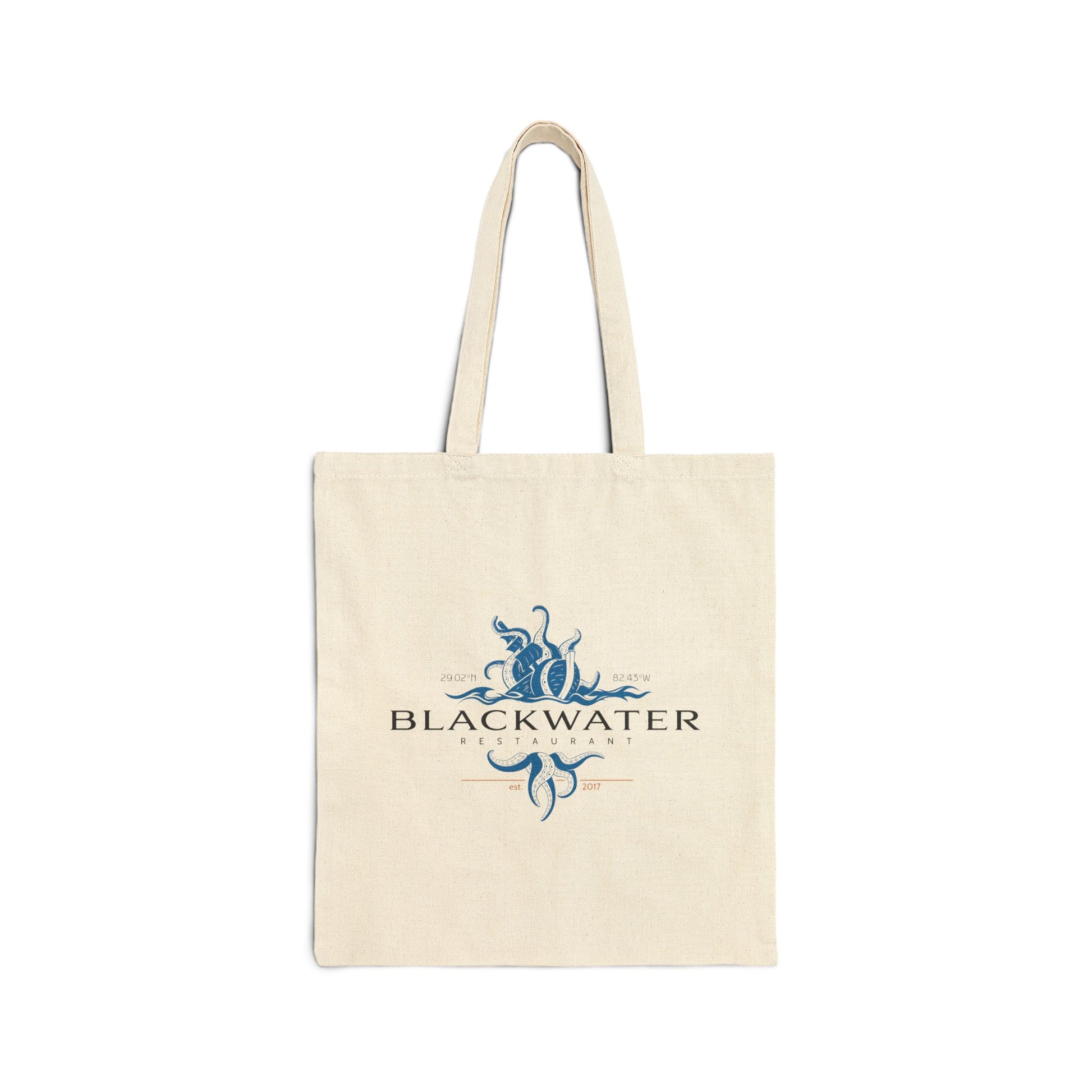 A sturdy cotton canvas tote that carries more than just items — it carries intent. The heavy 12 oz canvas and reinforced self-fabric handles stand up to daily use, while the flat-corner construction keeps the silhouette slim and functional. A subtle, coastal-inspired Blackwater emblem sits at center, giving the bag a quietly nautical character that complements market runs, library stops, or laid-back seaside strolls. Natural and black colorways keep the look versatile and easy to style with casual wardrobes. This tote feels lived-in from day one and grows more reliable with every errand and adventure.