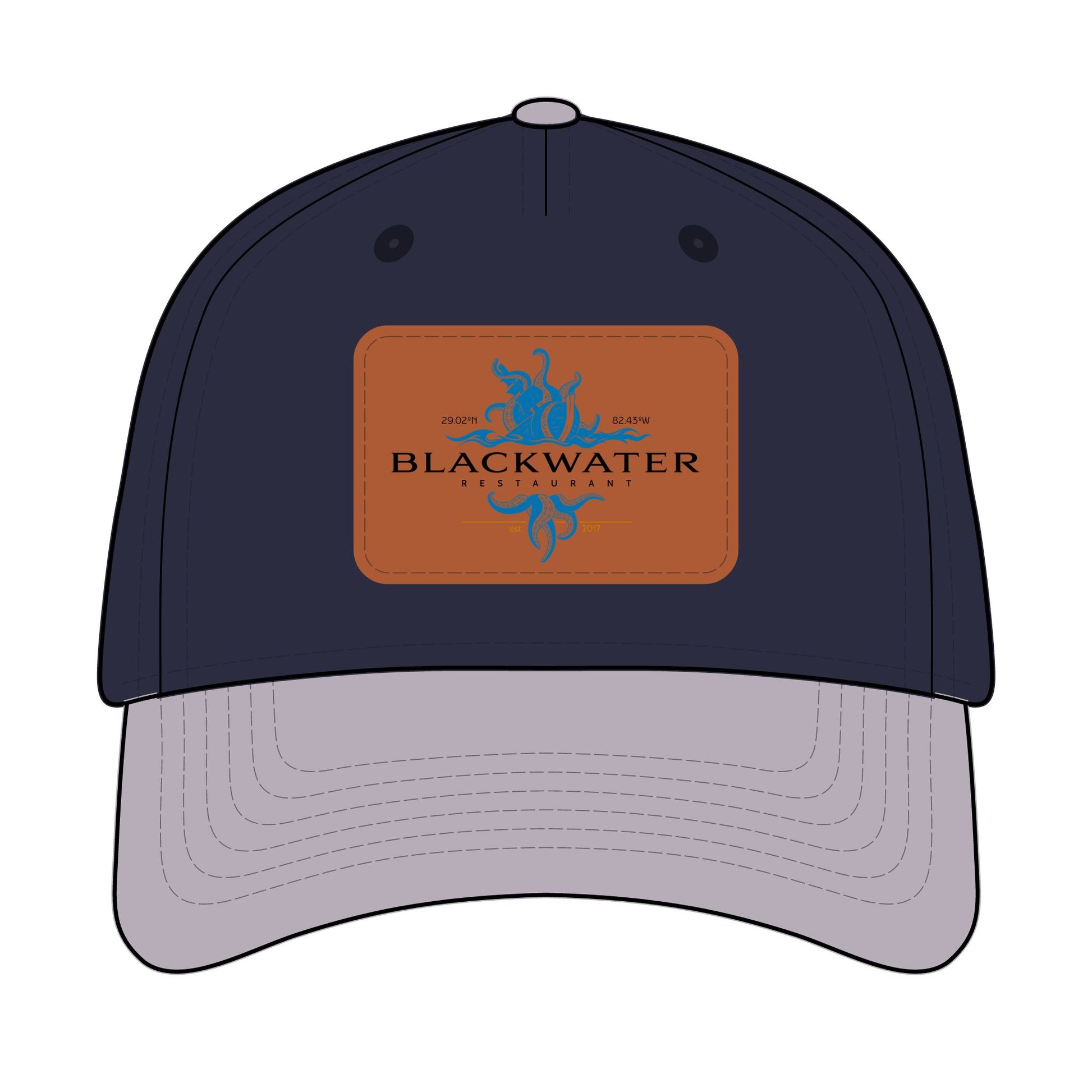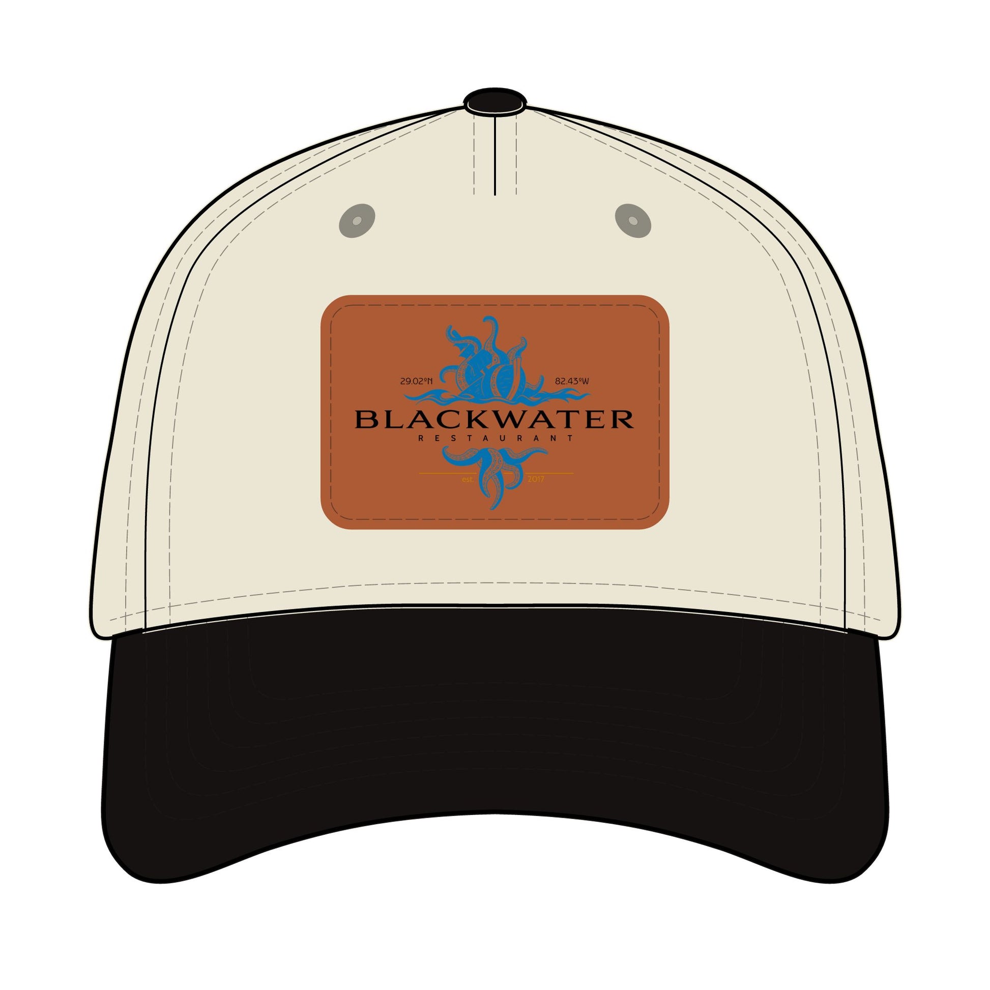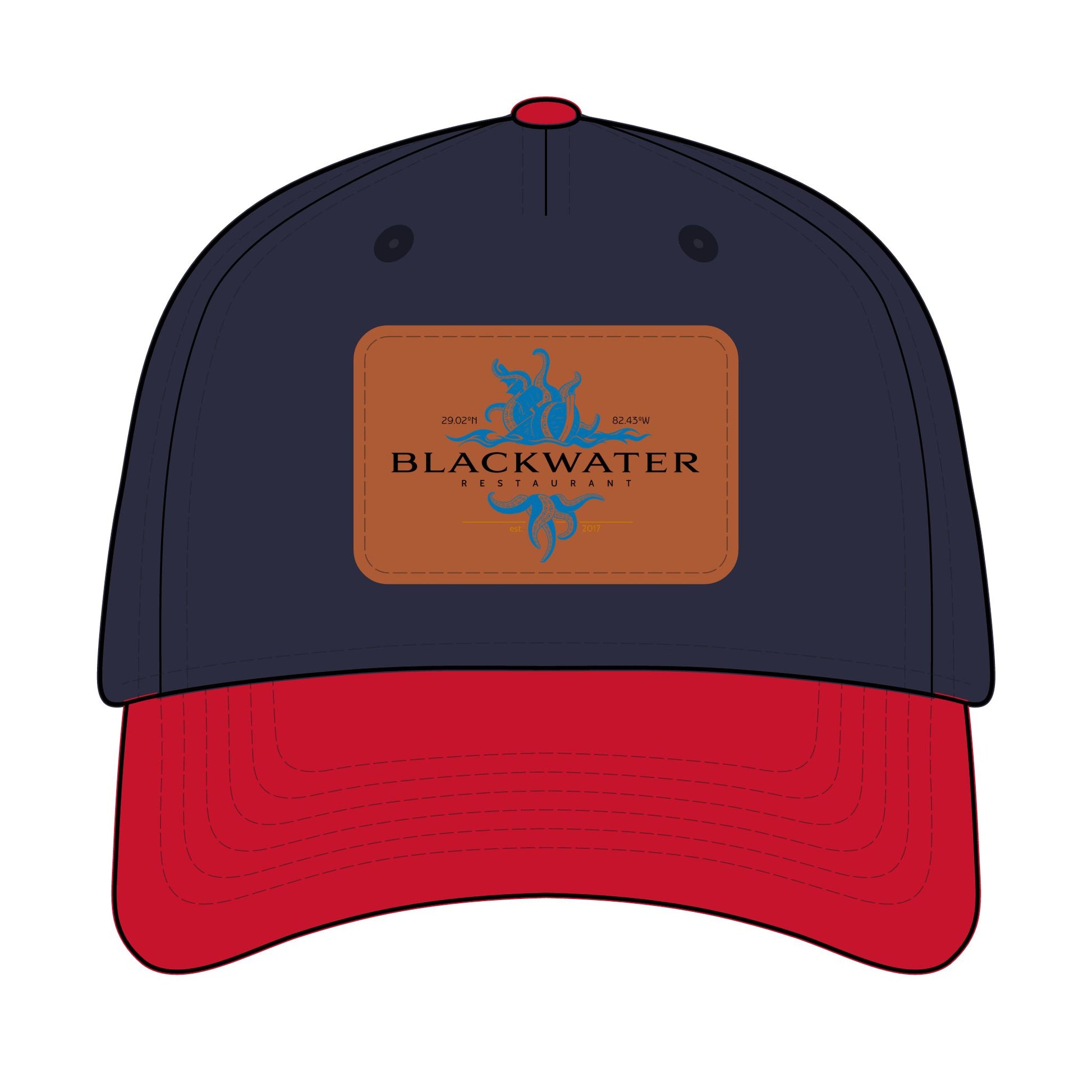 Leather Patch Baseball Cap — "Blackwater" Logo Trucker Hat