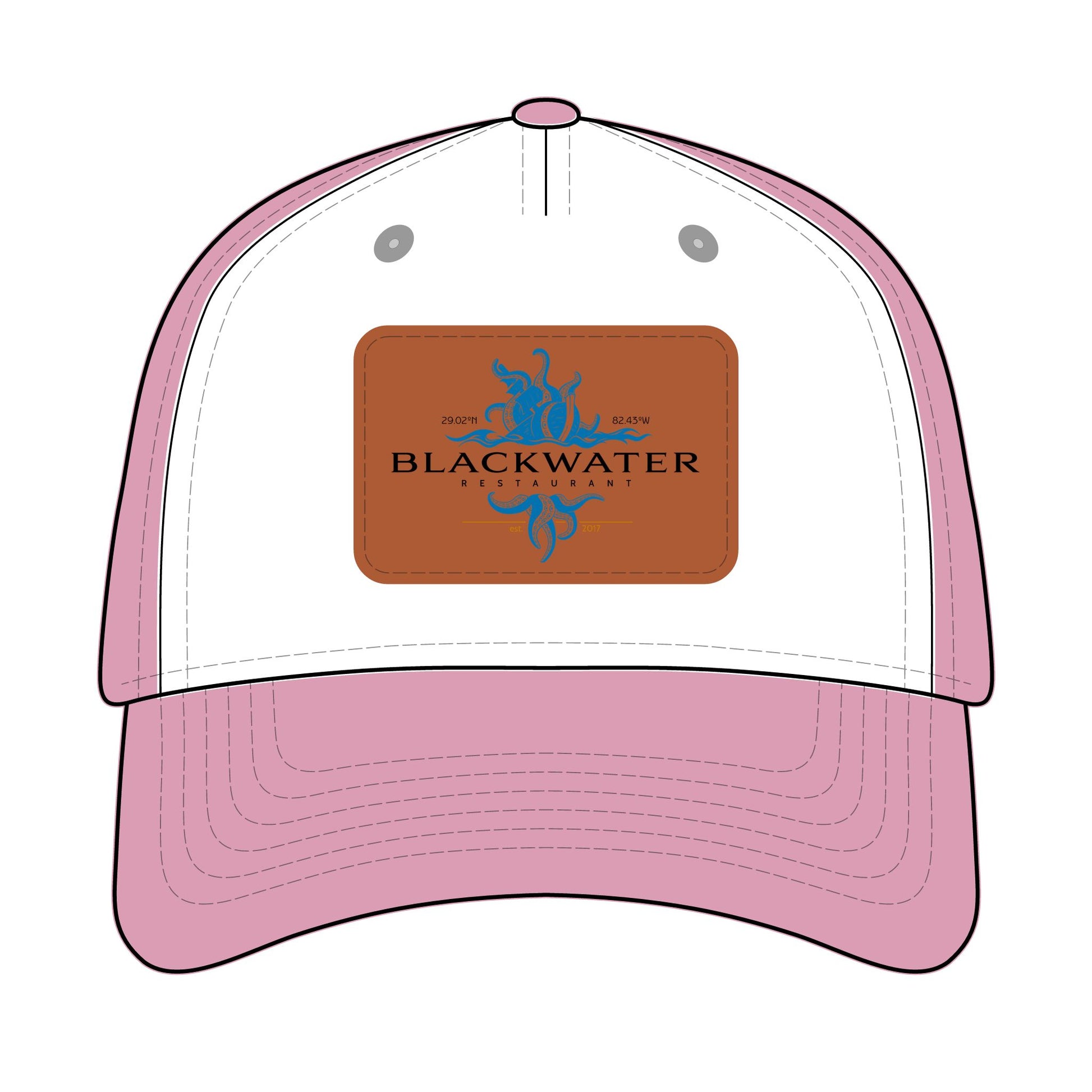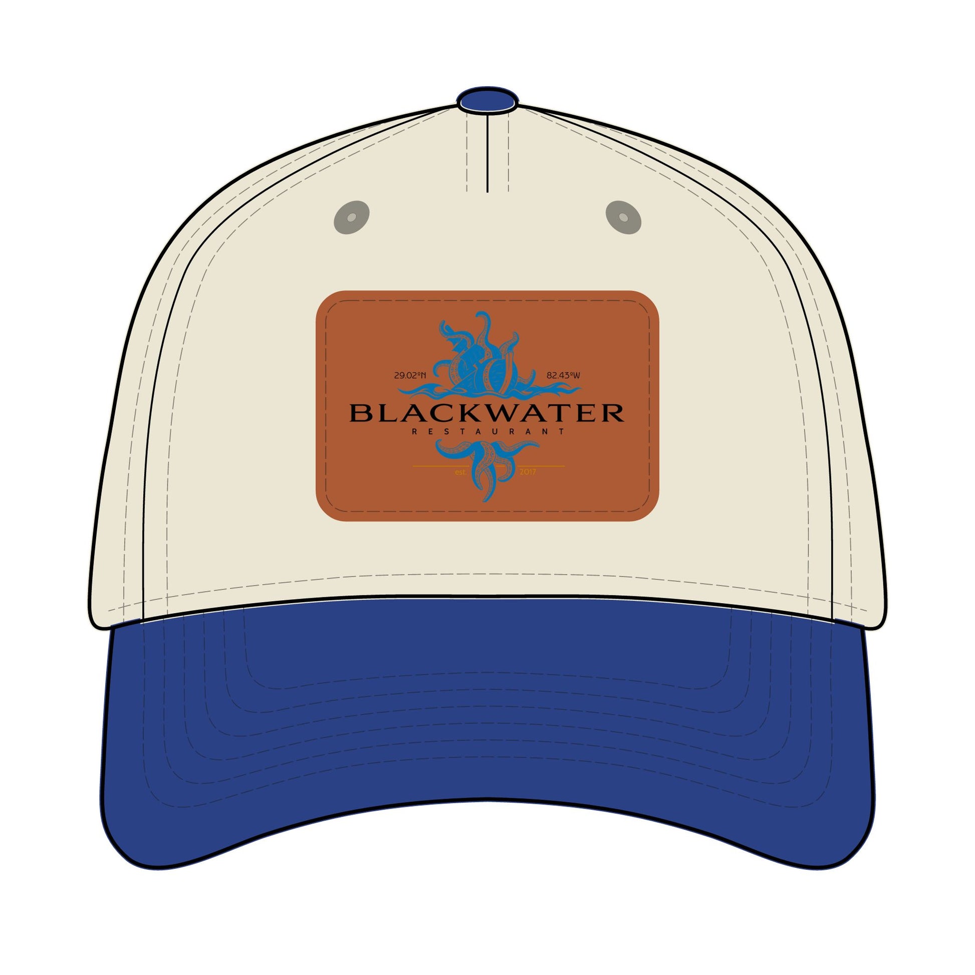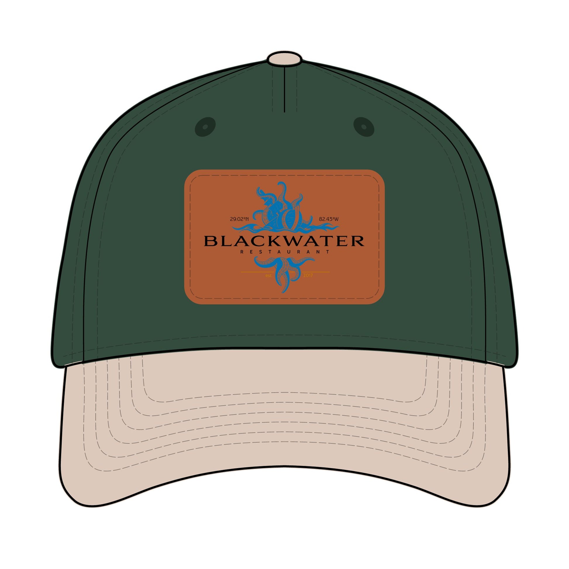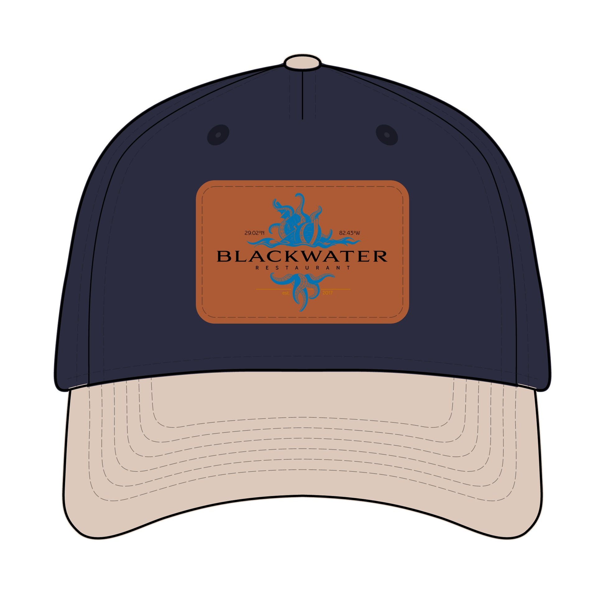 Leather Patch Baseball Cap — "Blackwater" Logo Trucker Hat